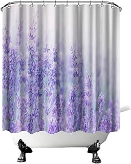 ラベンダーシャワーカーテン パープル 花 自然 バスカーテン ロマンチック フローラルファブリック 浴室装飾 フック付き 72インチ×72インチ