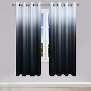 KEQIAOSUOCAI ブラックオンブレカーテン 寝室/リビングルーム用 2枚セット カーテンパネル グラデーションカラー 断熱 グロメットウィンドウドレープ 52インチ x 72インチ (2パネル)