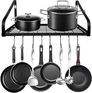 LADER ハンギングポットラック 壁掛け式フライパンラック ポットホルダー 鍋とフライパンオーガナイザー フック8個付き フライパンセット 台所用品 台所用品 浴室用 DIY方法2種類 ブラック