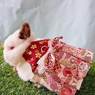 *桜着物* ペットハーネス ウサギのハーネス ペット服 ウサギの服 ペットロープ ウサギのリーシュ 2色 Sakura Kimono Design Pet Harness Rabbit Harness Pet Clothing Pet Rope Rabbit Leash 2 Colors (M, 赤)