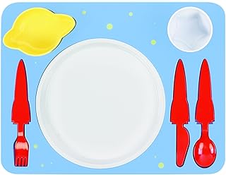 Space Melamine Kids Dinner 7-piece Set, Plate, Cup, Utensils, Bowl on a Tray by doiy