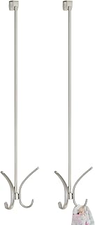 mDesign モダンなドアの上にモダンなエクストラロングクアッドフックメタルストレージオーガナイザーラック コート、パーカー、帽子、スカーフ、財布、リーシュ、ローブ、メンズ、レディース服 - トール、2パック - マットサテン