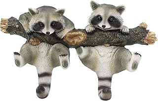 Ebros Whimsical Forest Rustic 遊び心のあるアライグマ2本 木の枝にぶら下がる6つのペグ壁フック 9.25インチ幅 ハンガー アライグマのげっ歯 テーマ 壁マウント コート 帽子 鍵 フック 装飾 吊り下げ 彫刻 飾り板