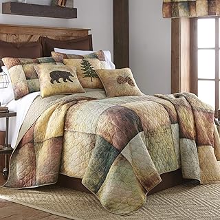 King Quilt - Birch Forest by Donna Sharp - Cotton Lodge Quilt with Bear Pattern - Machine Washable . Visit the Donna Sharp Store. 4.5 out of 5 stars 58 ratings. Size: King . Full/Queen. 2 options from $170.00 . King. 2 options from $190.00 . King Set. 1 option from $271.00 . Queen Set. $252.00 . Material: Cotton: Color: Grey, White, Brown: The Donna Sharp Birch Forest Quilt Set coordinates with the Birch Forest Quilted Bedding Collection (not included). Includes quilt and matching shams. Full/Queen: 90" x 90". King: 110 " x 96". Standard Sham: 20" x 26". Machine wash. Imported. High-quality 100% cotton with 70% cotton/30% polyester fill. Peaceful birch-forest theme.