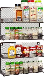 CAXXA 2枚組 2段メッシュ キッチン カウンタートップ 壁取り付け スパイスラック ジャー ストレージオーガナイザー ブロンズ