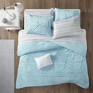 インテリジェントデザイン Robbie Cozy 掛け布団セット バッグ入りベッド モダン カジュアル オールシーズン寝具セット お揃いのシャム 装飾枕 ネイビー/タン フル 9点