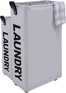 WOWLIVE 2パック トールスリム ランドリーバスケット 拡張ハンドル付き 薄型 折りたたみ式 ダブル L ランドリーバスケット 洗濯物入れ 洗濯物整理 グレー
