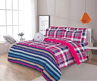 Sapphire Home 8ピース フルサイズ 女の子 キッズ ティーン 掛け布団セット ベッド・イン・バッグ シャム シーツセット&装飾玩具枕 子供用掛け布団寝具 シーツ付き 格子縞チェック ストライプ ホットピンク 8点 チェックピンク
