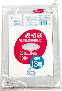 オルディ ポリ袋 規格袋 食品衛生法適合品 透明 13号 横26×縦38cm 厚み0.025mm 紐付き ビニール袋 LR025-13 100枚入