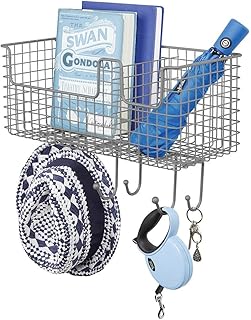 mDesign メタルワイヤー ファームハウス 壁装飾 ストレージ オーガナイザーバスケット 6つのフック付き 玄関 廊下 泥 寝室 バスルーム ランドリールーム 壁掛け グラファイトグレー