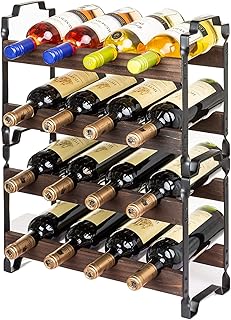 SODUKU ワインラック 積み重ね可能 木製メタルワインボトルオーガナイザー 自立式ストレージシェルフ バー キッチン パントリー用 2個パック