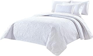 Chezmoi Collection Norfolk 特大花柄メダリオンエンボスベッドスプレッド3点セット クイーン ホワイト