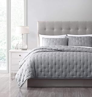 Chezmoi Collection Milo 3点セットソフトバンブーファイバー クロスステッチ キルトベッドカバーセット キング グレー