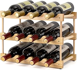 木製ワインラック 積み重ね可能 収納ボトル12本収納 3段 モジュラー 小型ワインラック カウンタートップ 農家 ワインホルダー スタンド リビングルーム テーブルトップ (ナチュラル、12本)