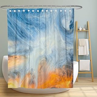 MuaToo 抽象ファブリックシャワーカーテン 装飾白と黄色のアートペインティング お手入れ簡単 丈夫 防水生地 72 x 72インチ フック付き