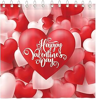 Funnytree バレンタインデー レッドピンクハートシャワーカーテンセット フック付き スイートラバーズ ウェディング 結婚 女の子 レディース バスルーム 浴槽 装飾 お手入れ簡単 防水 洗濯可能 丈夫なポリエステル生地 72インチx72インチ