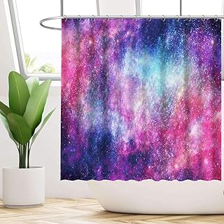 Funnytree Galaxy 星空シャワーカーテン バスルーム用 宇宙 宇宙 星空 ホーム バスタブ カーテン装飾セット フック12個付き お手入れ簡単 防水 洗濯可能 ソフト 耐久性 ポリエステル生地 72インチ×72インチ