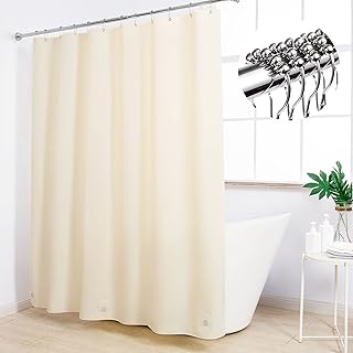 Ryhpez シャワーカーテンライナー フック付き 防水 8G 浴室シャワーカーテンセット マグネット付き ベージュ 72インチx72インチ