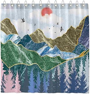 Funnytree 山の森のシャワーカーテン バスルーム用 自然の風景 家庭のバスタブカーテン装飾セット フック12個付き お手入れ簡単 防水 洗濯可能 ソフト 耐久性 ポリエステル生地 72インチ×72インチ