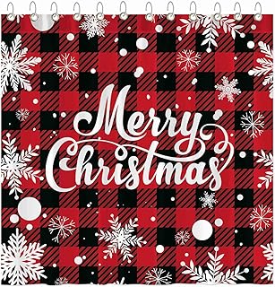 Funnytree Marry クリスマスシャワーカーテンセット フック付き レッドバッファローチェック 格子柄 雪の結晶 クリスマス バスルーム 浴槽 装飾 お手入れ簡単 防水 洗濯可能 耐久性 ポリエステル生地 72インチ x 72インチ