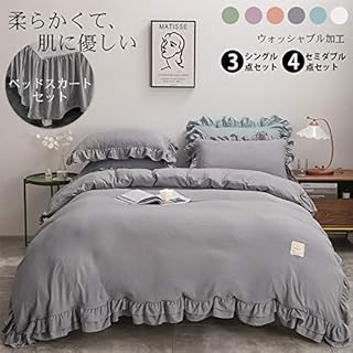布団カバー シングル 3点セット 掛け布団カバー ベッドスカート 洋式 枕カバー かわいい フリル付き おしゃれ ベッド用 布団用 ベット 寝具カバー 姫系 ピーチスキン加工 北欧 安心 清潔 丸洗いOK 抗菌防臭 洗い替え速乾 クリスマスプレゼント (グレー・フリル, シングル・3点セット)