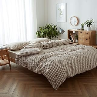 布団カバー 3点セット シングル 綿100% 掛け布団カバー ボックスシーツ 枕カバー 洋式・和式兼用 可愛い チェック柄 柔らかい 通気吸湿 洗える オールシーズン プレゼント(ベージュ・チェック柄, シングル・3点セット)