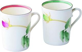 香蘭社 ブライトローズ ペアマグカップ 華やかな一輪の薔薇のデザインが永いブライトローズの有田焼 ピンクとグリーンが美しく上質な白磁に映える プレゼントにも最適 エンジュール販売