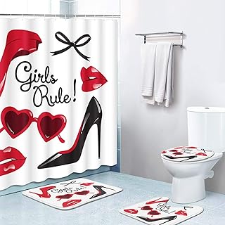 Britimes シャワーカーテン4点セット 女性用メイクアップ ノンスリップラグ付き トイレ蓋カバー バスマット 丈夫で防水 バスルーム装飾セット 72インチ x 72インチ