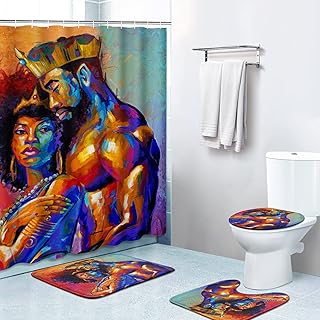 Britimes シャワーカーテン4点セット フック12個付き アフリカ人女性 男性 滑り止めラグ付き トイレ蓋カバー バスマット 丈夫で防水 バスルーム装飾セット 72インチ x 72インチ