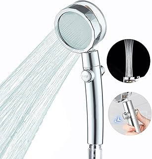 ターボチャージハンドヘルドシャワーヘッド - プロペラ駆動 高圧ターボファンシャワーヘッド フィルターと一時停止スイッチ付き 360度回転 節水シャワーヘッド