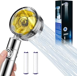 ハンドヘルド ターボチャージド プレッシャー プロペラシャワー 2021年アップグレード プロペラ駆動 ターボ充電 スピニングシャワーヘッド ターボファン 節水シャワーヘッド フィルターと一時停止スイッチ付き(イエロー)