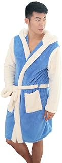 レディース メンズ 着る毛布 マイクロファイバー パジャマ ルームウェア フード付き フランネル ガウン 防寒 プレゼント (L, ブルースティッチ)